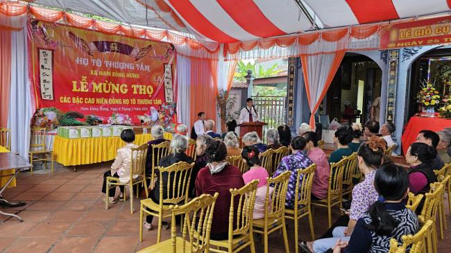 Nhân dịp Giỗ Cụ Thủy Tổ Bà hiệu Từ Hạnh ngày 8 tháng 03 năm 2026 (ngày 20 tháng Giêng năm Bính Ngọ) , tại Từ đường Đại Tông – xã Nam Đông Hưng, tỉnh Hưng Yên (trước đây thuộc xã Đông Hoàng, huyện Đông Hưng, tỉnh Thái Bình), con cháu dòng họ Tô Thượng Tầm đã trang trọng tổ chức Lễ mừng thọ các bậc cao niên trong dòng họ. Hoạt động ý nghĩa này thể hiện đạo lý “kính lão – trọng thọ”, đồng thời góp phần gìn giữ và phát huy những giá trị văn hóa truyền thống tốt đẹp của gia tộc.