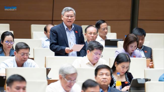 Ủy viên chuyên trách Ủy ban Pháp luật và Tư pháp của Quốc hội Tô Văn Tám (Đoàn ĐBQH tỉnh Quảng Ngãi) góp ý tại phiên thảo luận. Ảnh: PV