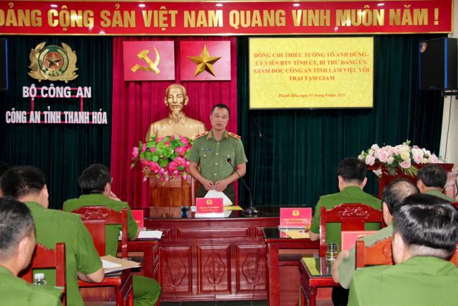 Sáng 03/9/2025, đồng chí Thiếu tướng Tô Anh Dũng, Giám đốc Công an tỉnh đã có buổi làm việc với Trại Tạm giam Công an tỉnh. Tham gia cùng Đoàn công tác, có đồng chí Thượng tá Trần Thái Quang Hoàng, Phó Giám đốc Công an tỉnh, đại diện lãnh đạo một số phòng thuộc Công an tỉnh.