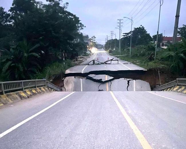 Sáng 3/10, chính quyền xã Nà Hang, tỉnh Tuyên Quang cho biết, đầu cầu Tát Luông, đoạn qua thôn 6, xã Nà Hang đã bị sụt lún nghiêm trọng do ảnh hưởng của mưa lũ lớn những ngày qua. Hiện, phương tiện và người dân không thể lưu thông qua cây cầu này.